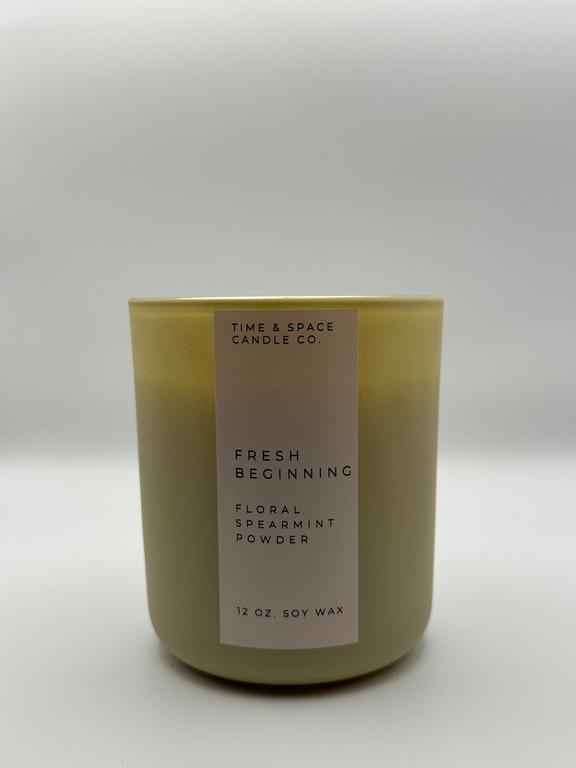 Inspired by life’s celebrations our 12 oz Fresh Beginning Luxury Candle, features delicate floral notes, invigorating spearmint, and fresh linen.